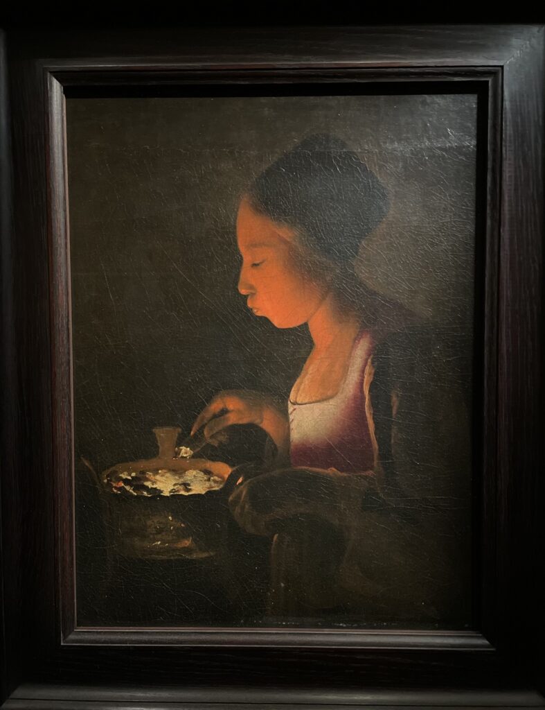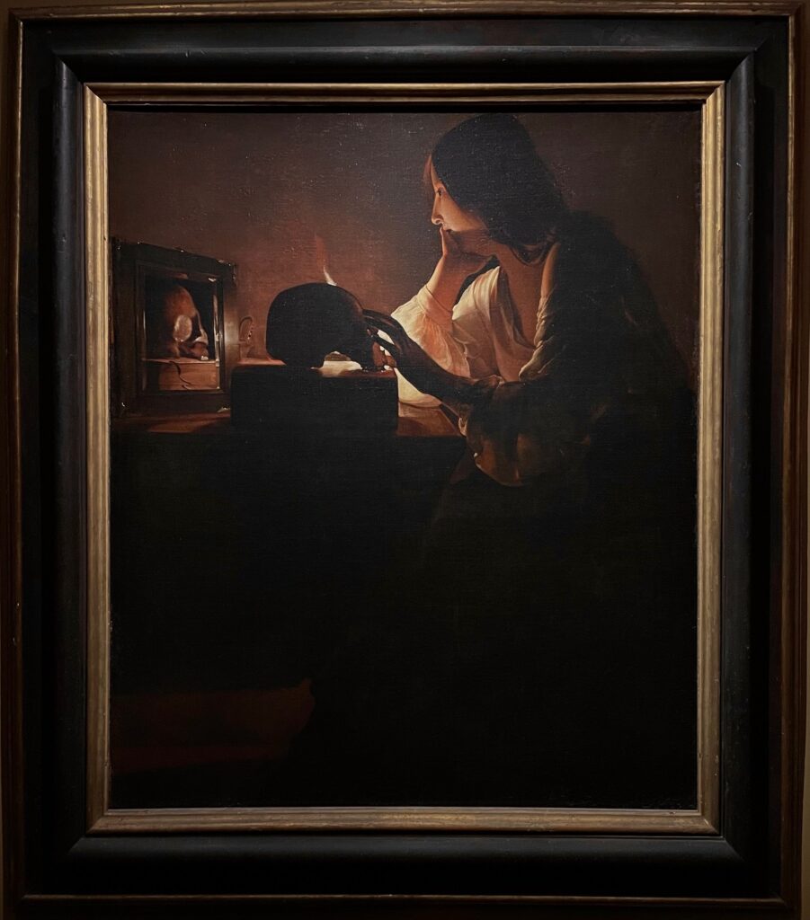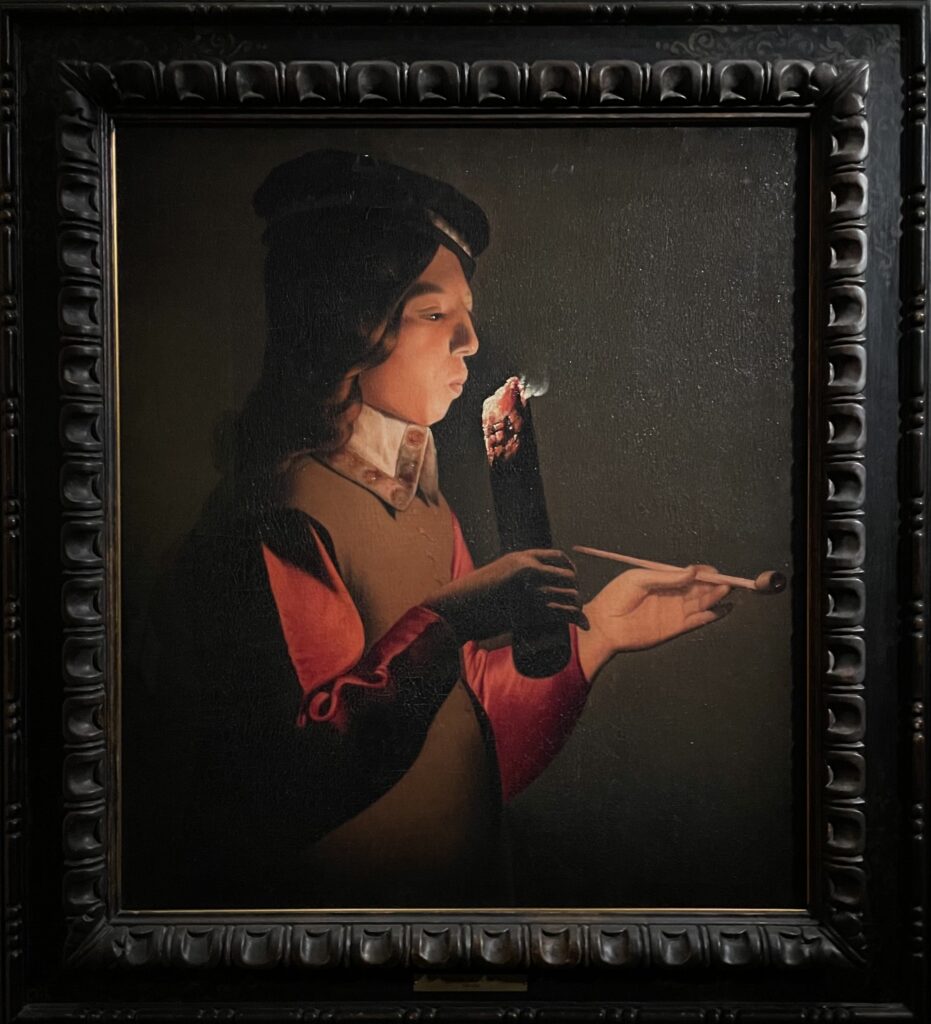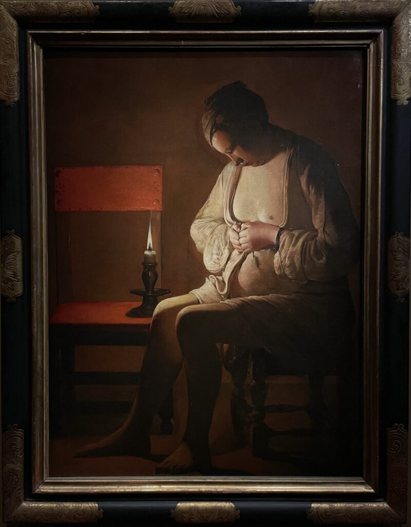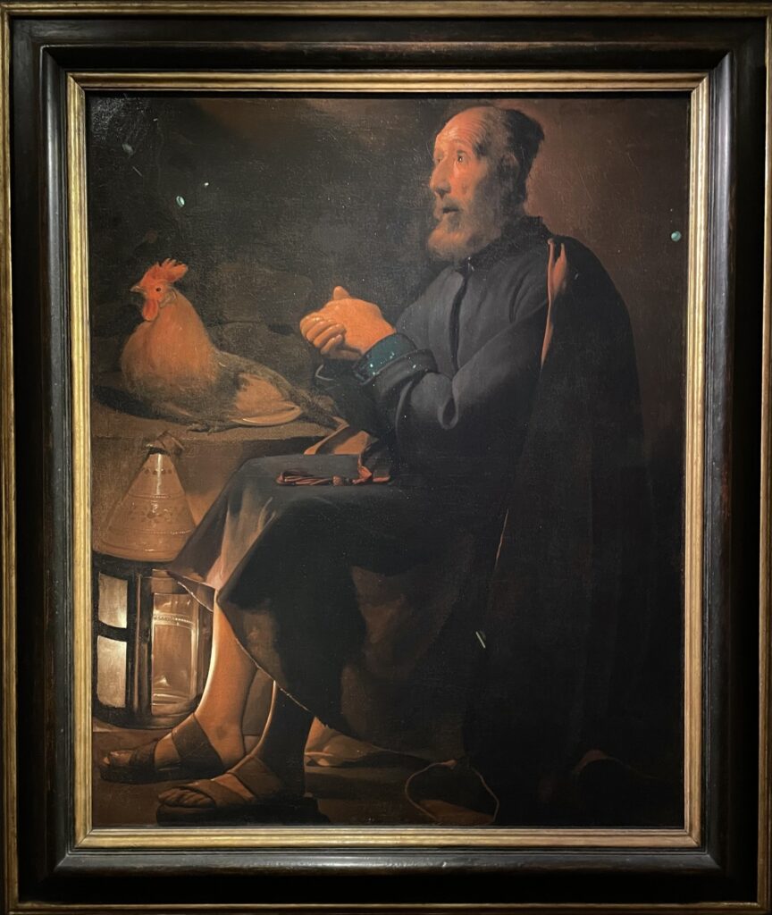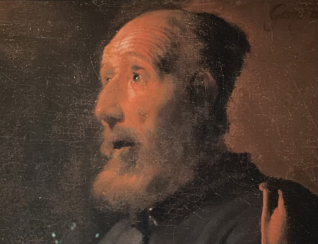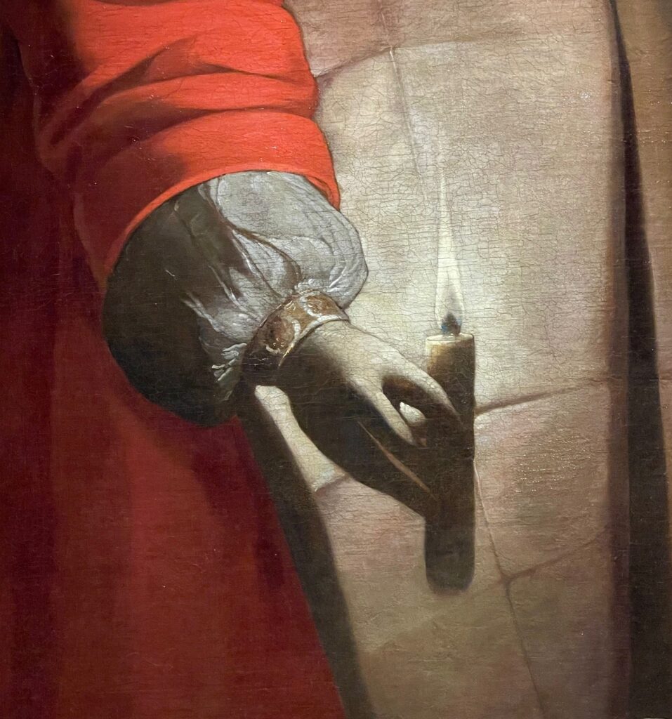 這幅畫的作者是十七世紀的喬治.德拉圖爾(Georges de La Tour,1593-1652),他是洛林公國的知名畫家,當時洛林地區尚不屬於法國領土。在三十年戰爭期間(1618-1648),法國曾佔領該地,1638年,德拉圖爾所住的城市被法國、瑞典聯軍焚燒摧毀殆盡,這說明了為什麼今天德拉圖爾流傳於世的作品只約四十餘幅,而關於他的相關文獻記載,除了1593年的出生受洗證明之外,最早只能追溯至其二十三歲,因此我們今日尚無法得知德拉圖爾年輕時的習畫背景。1639年,德拉圖爾接受法國國王路易十三的任命,成為國王的御用畫家,德拉圖爾離開洛林到巴黎,1641年就又返回故鄉定居發展。德拉圖爾在世已享有聲名,但他過世後卻被完全遺忘,他的許多作品都被歸為其它畫家名下,要一直到1915年才被藝術史家重新發掘。